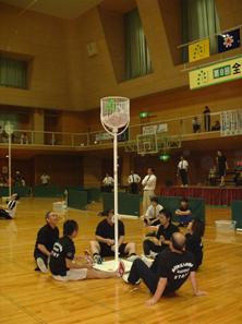 1チーム4~6人の選手。 ただし、選手全員おしりを床に付けて競技します。