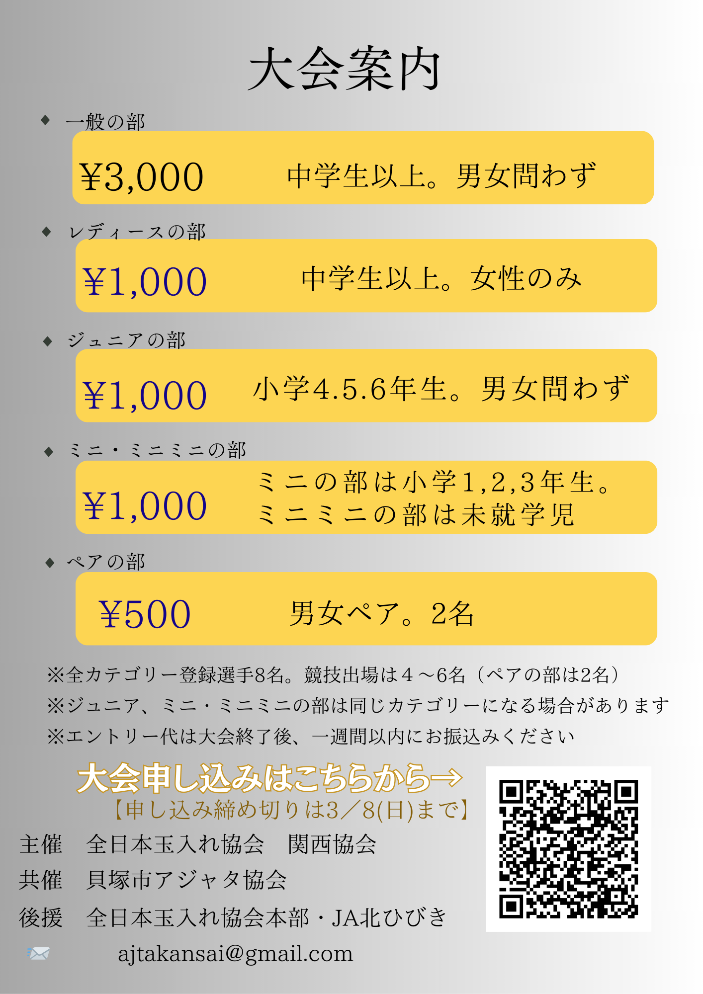 第24回 アジャタ関西選手権大会を開催いたします!11:30 開会式